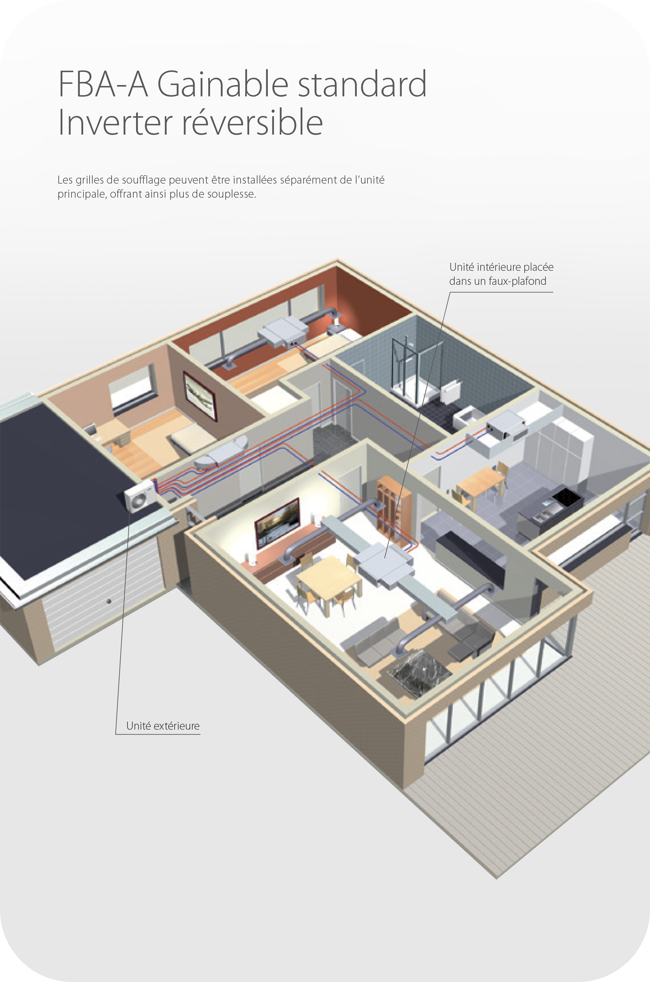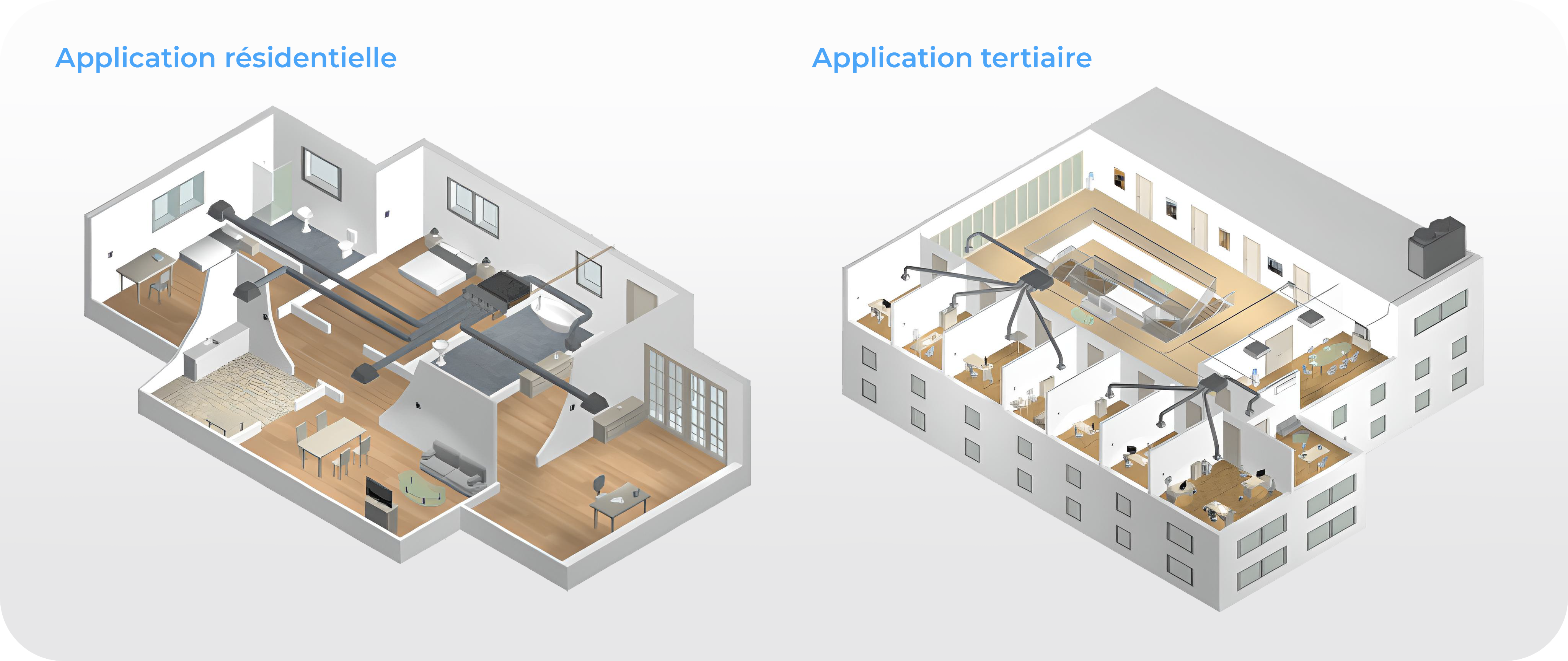 • Discrétion : les gaines sont installées dans les combles, les faux plafonds ou les murs, ce qui permet de dissimuler les unités en toute discrétion.